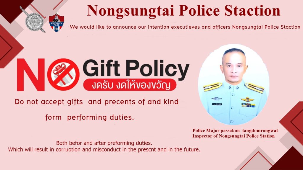 สถานีตำรวจภูธรหนองสูงใต้ประกาศนโยบายต่อต้านการรับสินบน วันที่ 17 มกราคม 2568 เวลา 08.30 น. พ.ต.ต.ภ